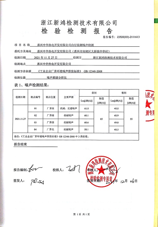- 中華熱電3季度噪聲檢測(cè)報(bào)告