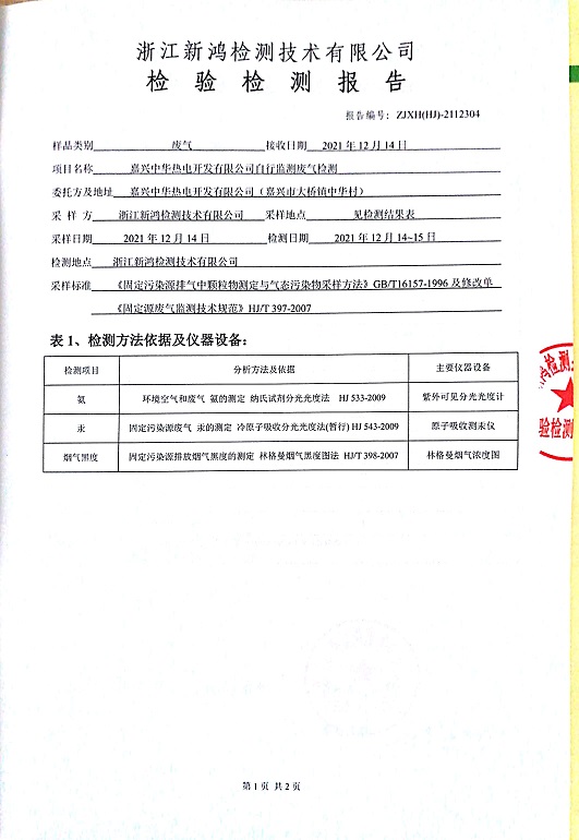 - 中華熱電6月廢氣檢測(cè)報(bào)告