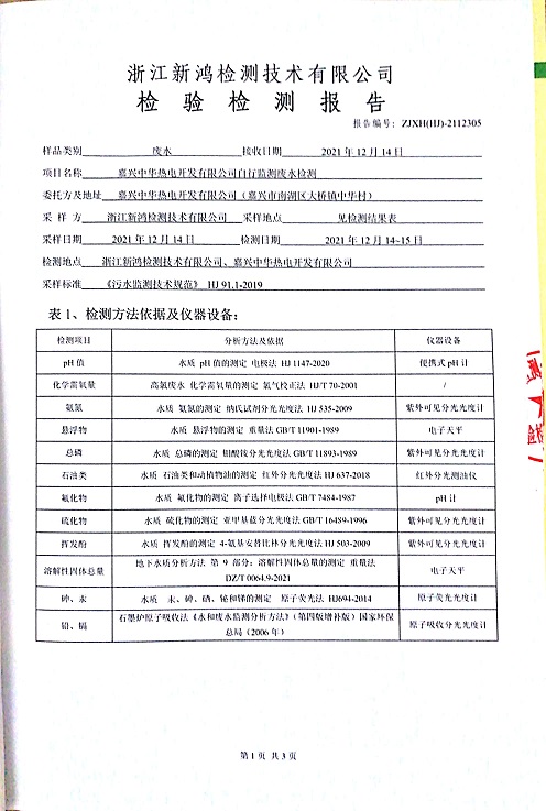 - 中華熱電3月廢水檢測(cè)報(bào)告
