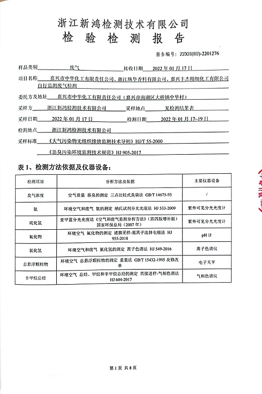 報告名稱:中華化工、縱華、豐杰2022年1季度廠界檢測報告