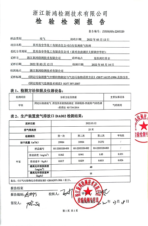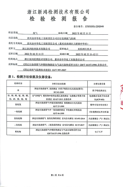 - 中華化工上半年廢氣檢測(cè)報(bào)告