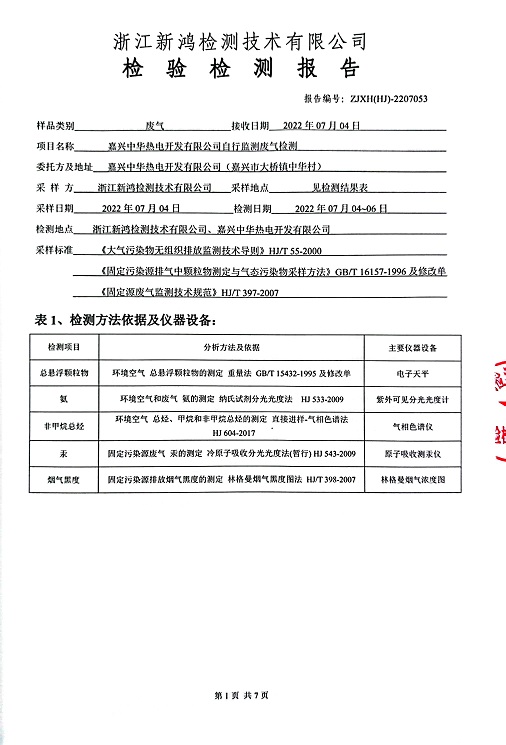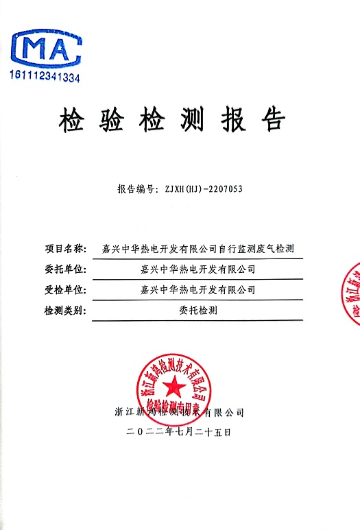 報(bào)告名稱(chēng):中華熱電2022年7月廢氣檢測(cè)報(bào)告