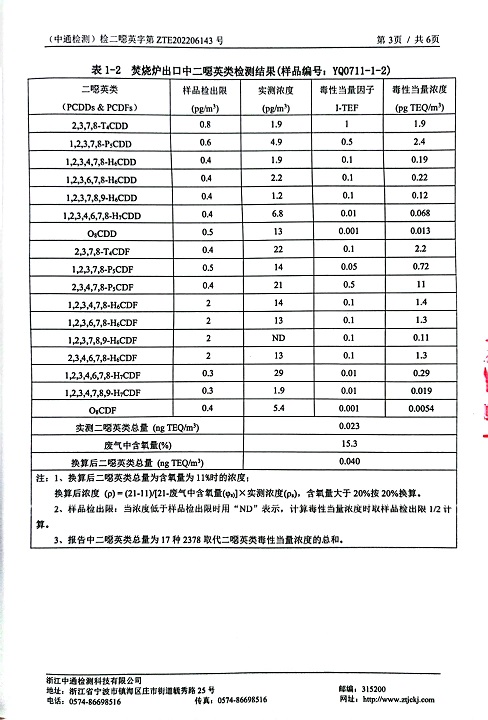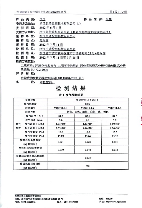 報(bào)告名稱:縱華2022年下半年二噁英檢測報(bào)告