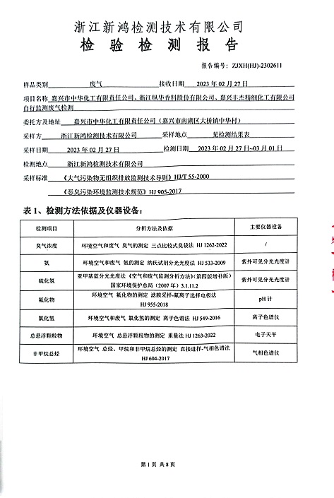 - 中華化工2季度廢氣檢測報(bào)告
