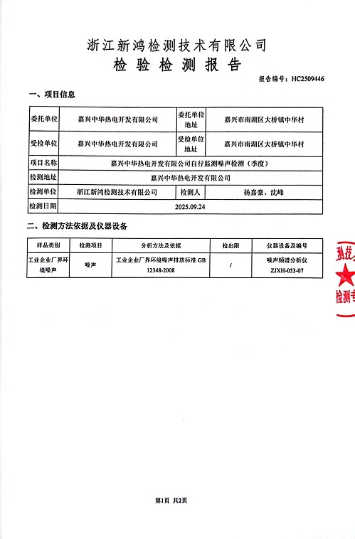 - 中華熱電3季度噪聲檢測(cè)報(bào)告
